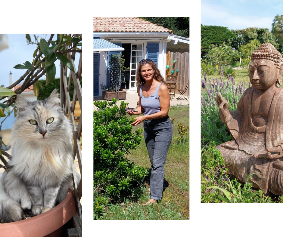Als Saisonarbeiterin in Soulac in den 90er Jahren verliebt sie sich in den Charme des kleinen Badeortes. Nach einigen Jahren als Yoga-Nomadin beschließt sie, zurückzukehren und bietet erstmals im Sommer 2013 Strandyoga in Soulac an. Im Jahr 2020 verwirklicht die Deutsch-Französin ihren Traum mit dem Kauf ihres Hauses, einer wahren Oase der Ruhe begleitet von Meeresrauschen.