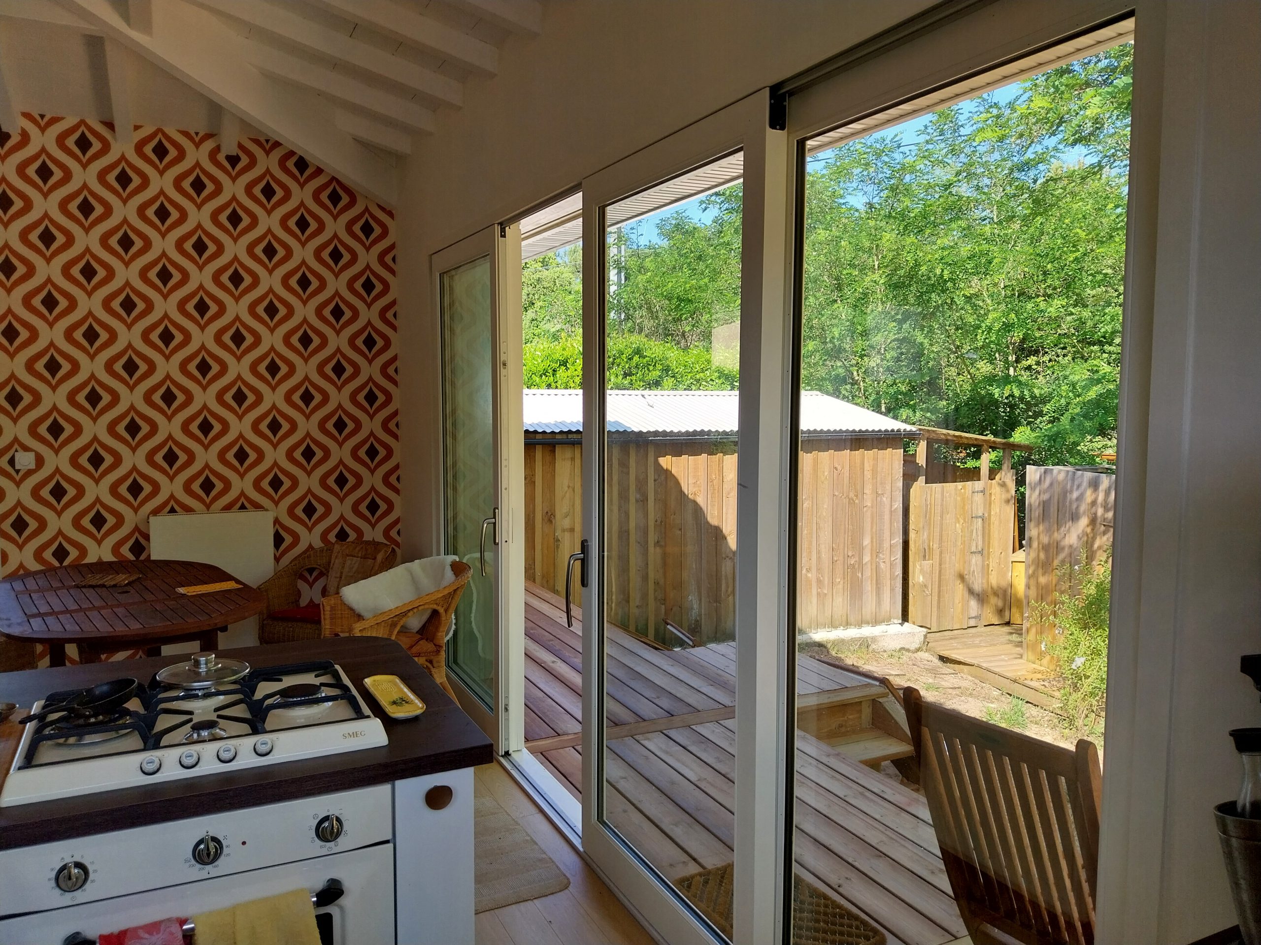 Entdecken Sie unser luxuriöses Chalet, das in ruhiger Lage in einem Garten mit Bäumen und nur wenige Schritte vom Ozean entfernt steht. Diese individuelle Unterkunft aus Holz, die für ein bis zwei Personen gedacht ist, vereint Charme und Funktionalität im Stil eines Strandhauses. Mit seinen 20 m² Innenfläche und der großen überdachten Terrasse bietet dieses gemütliche Chalet den idealen Rahmen für einen erholsamen Aufenthalt in Soulac.